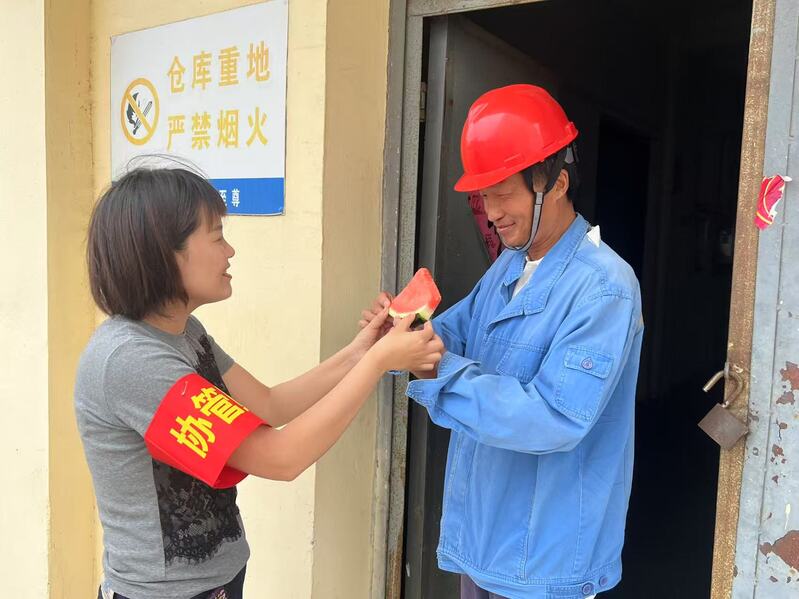 近日,物資貿易公司開展 “夏日送清涼” 活動,為基層庫房保管員送去組織的關懷。女工協管員將西瓜等防暑降溫物資送到他們手中,叮囑他們勞逸結合,避開高溫時段作業,做好自我防護。
